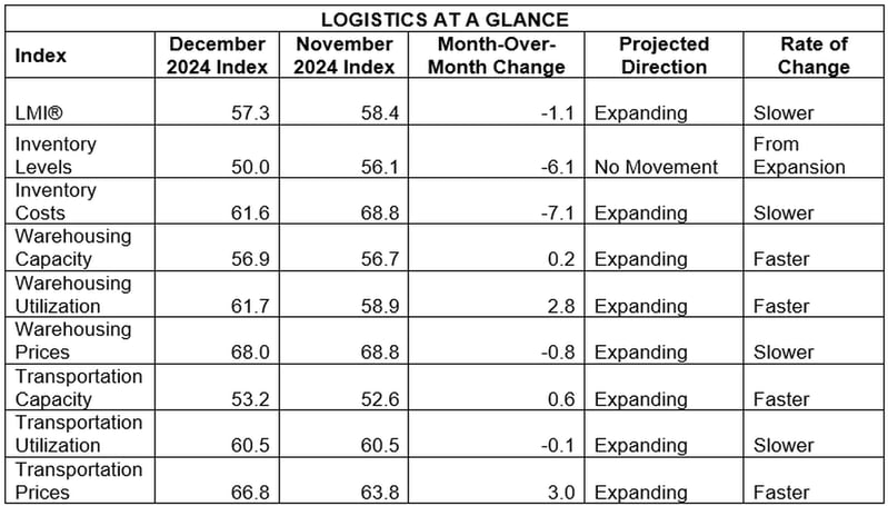 See the summary of the December 2024 Logistics Managers' Index, by the numbers: